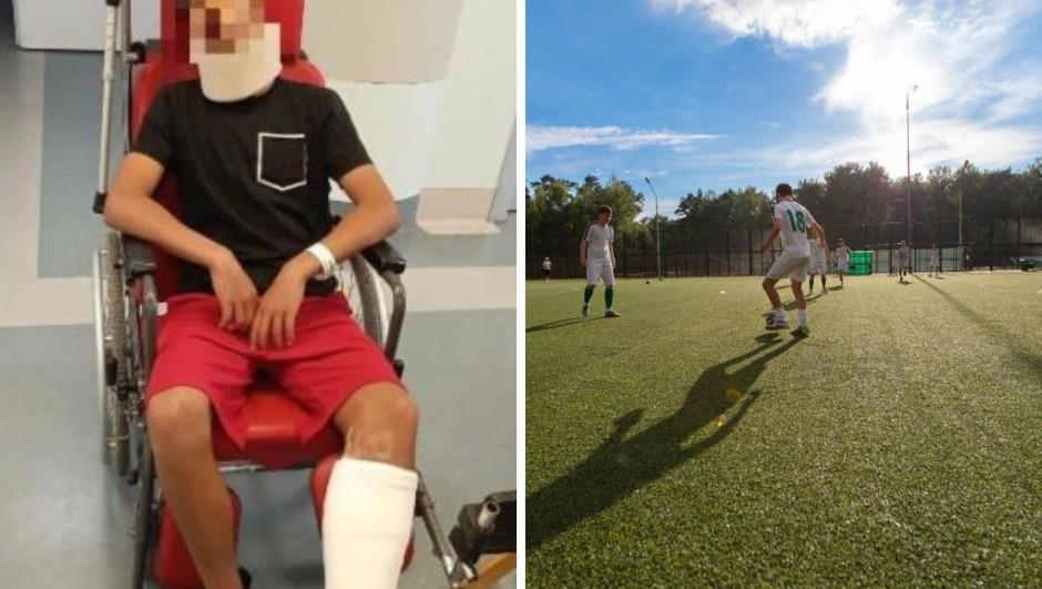 被打的13岁门将被送往医院,被诊断为颧骨严重挫伤及脚踝骨折。